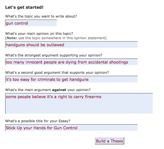 Argumentative thesis statement generator is designed to help you formulate the thesis for your future argumentative essay.