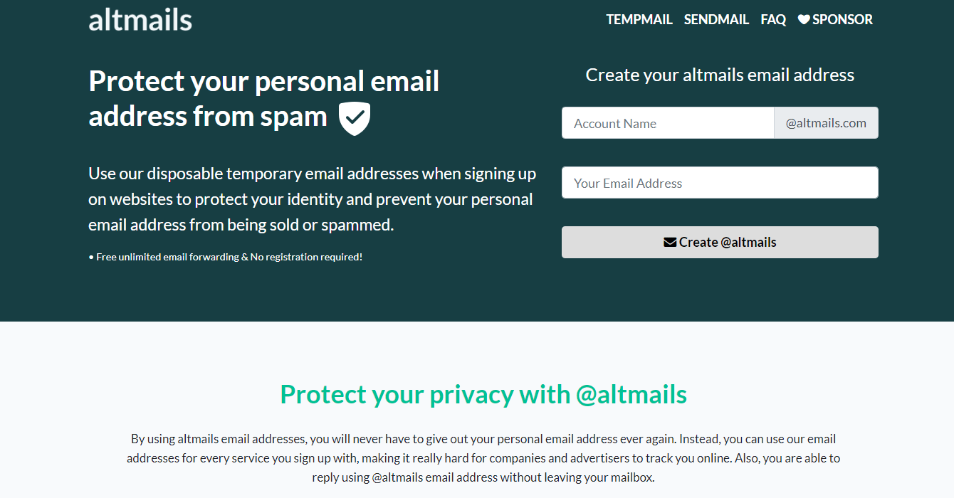 This disposable email service doesn't require any personal details to generate temporary email address, making it secure, anonymous and completely free.