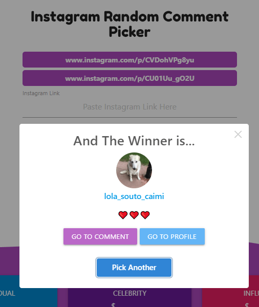Instagram comment picker is a free and online tool where you can pick a winner for your instagram giveaways, raffles, .